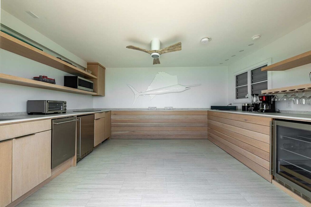 Moonshadow has a fully functional, well-equipped kitchen with all of the conveniences of home. Whether grilling fresh locally-caught lobster or fish on the state-of-the-art outdoor grill or cooking breakfast, lunch, or dinner indoors, you have the flexibility to dine at the villa or enjoy any of the great restaurants within minutes of your driveway. Several grocery stores are nearby, including a large IGA that stocks everything you would expect from a mainland store. Upon your arrival, there will likely be a few food staples (and liquor) in the cabinets and fridge. Please help yourself.
